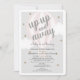 Este belo convite por correio para a chá de fraldas da garota "Up and Away" apresenta um fundo de cinza leve enquadrado por uma borda branca com um balão de ar quente em rosa-bebê claro, estrelas douradas falsas e nuvens costura. O verso apresenta um fundo branco com padrões de gingham de cinza. Personalize para suas necessidades. Você pode encontrar mais produtos correspondentes na minha loja.