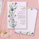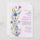 Este Convite ao Chá de fraldas apresenta um belo arranjo de flores silvestres pintadas em aquarela, com uma paleta colorida de azul e roxo complementada por folhas verdes azuladas sobre fundo rosa púrpura. As bordas florais na parte de trás do convite adicionam um toque encantador ao design geral, fazer que seja uma escolha perfeita para uma celebração inspirada na natureza.