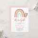 Chá de fraldas rosa-rosa do arco-íris convite para uma menina, boho-blush rosa