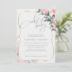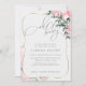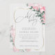 Querida! Pink Floral Spray Envolve este convite de Chá de fraldas Chic - este apresenta rosas rosa pintadas manualmente nos cantos com um colchete dourado no centro - tudo com um fundo texturizado de casca de ovo - a caligrafia moderna faz com que seja realmente chique e romântica. Design Original ©WhimsicalArtwork™