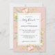 Bonito convite para chá de fraldas de vassoura rústica floral cor-de-rosa com peões cor-de-rosa apresentando um roteiro elegante num fundo cor-de-rosa. Se precisar de ajuda ou produtos correspondentes, entre em contato conosco através da nossa loja.