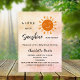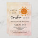 Um fundo rosa dourado e cinza rosa-claro. Personalize e adicione o nome e os detalhes da festa. Texto: Um pequeno raio de sol está a caminho.