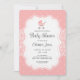 Para a futura mãe. Convite para bolinhas, bonito, cor-de-rosa, vintage e chá de fraldas local com um pram rosa vintage. Mantenha o texto do design como está ou edite para texto de tamanho equivalente. Inclua seu próprio texto para se adequar aos detalhes do evento. Escolha o seu próprio tipo de papel antes de concluir a compra.