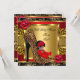 Chá de fraldas Afro-Americana, Menina Bonita em vermelho. Dourado e Rosa vermelha, Calçado de alto salto de Leopardo. Elite e Elegante Dourada Frame Negra, Rosa com a impressão animal "chita leopardo". Personalize com seus próprios detalhes.