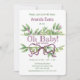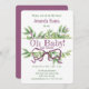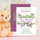 Um Convite para Chás de fraldas desenhado em cores de roxo mole e verde em fundo branco com o texto: Oh Baby! O reverso é um roxo sólido que combina com texto: Chá de fraldas - Oh Baby! em sotaque verde. Para personalizar o texto, basta inserir o nome da mãe e todos os detalhes do chá em nosso fácil modelo, substituindo a amostra. É rápido e fácil.