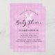 Querida, roxa, em forma de diamante, formação para celebrar um chá de fraldas temático para bebês. Um coelho branco aparece logo acima do texto "Chá de fraldas". Editar áreas de texto para criar uma parte de chá de fraldas exclusiva e especial.