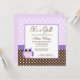 Um convite bonito e moderno do chá do bebé da coruja. Caracterizando bolinhas e listras nas máscaras do roxo, do marrom e do branco.