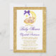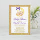 Urso de Urso com Água na Lua com Convite ao Chá de fraldas de arco roxo. Dourado quadro de brilho. Texto Dourado e Roxo.