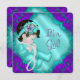 Bonito convite para chás de fraldas azul e roxo, com espiral elegante e roxo e adorável menina vestindo uma corda de pérolas e flores roxas em seu cabelo. Este convite para chá de fraldas azul roxo e lacrado é facilmente personalizado para o seu evento simplesmente adicionando os seus detalhes no estilo de fonte, cor e texto da sua escolha.