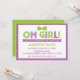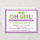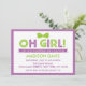 Celebre a chegada da sua bebê com um convite para chás de fraldas roxo e verde limão bonito e retrô. Esta tendência e este convite adorável está completo com um arco bonito e uma borda pontilhada de polca. Altere o estilo e a cor da fonte clicando no botão "Personalizar" abaixo da imagem do produto.