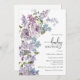 Convite para Chá de fraldas Roxo Elegante. Desbloqueie o charme da elegância rústica com nossos incríveis convites para o chá de bebê. Pintado à mão em tons de roxo e azul que refletirão o ambiente único de seu chá de fraldas rústico, externo ou clássico.