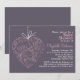Convite de chá de fraldas Whimsical. Apresenta uma ilustração do coração floral composta por flores, folhagem, pássaros e outros detalhes do design num fundo roxo. Este elegante convite para chás de fraldas será perfeito para chás de fraldas temáticos de inverno, formal ou capricho.
