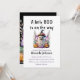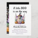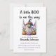 Design do tema do Dia das Bruxas Bonito com o título "A Little Boo is on way" apresentava um fantasma engraçado no chapéu e abóboras