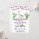Adicione uma reviravolta divertida à sua celebração com este adorável Convite para Chá de fraldas Purple Llama. Apresentando um lama fofo cercado por cactos do deserto, florais suaves e um banner de fiesta roxa, capricho, este convite dá o tom para um chá de fraldas alegre e colorido com um divertido talento sudoeste. Quer você esteja planejando uma fiesta de lama ou uma festa no jardim de cacto, este convite é a maneira perfeita de convidar convidados para comemorar seu pequeno estilo! BBS142