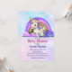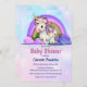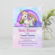 Este convite para chás de fraldas apresenta dois adoráveis unicórnios roxos em frente a um vibrante arco-íris rosa e roxo. Esta design encantadora foi projetada especificamente com uma menina em mente. O texto personalizável permite personalizá-lo com todos os detalhes necessários, como o nome da futura mãe, a data, a hora e o local do chá de fraldas, bem como RSVP e informações de registro. É perfeito para uma mãe que ama um toque de chorona e quer dar ao chá de fraldas uma vibração mágica e divertida.