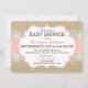 Convites Chá de fraldas Russo Burlap Modern Lace Coral Girl