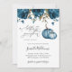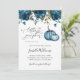 Cartão de convite para chás de fraldas russo com abóboras azuis e flores. O texto diz "um pouco de abóbora está a caminho".
