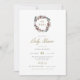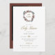 Este convite de chá de fraldas apresenta pinos de aquarela e uma fonte elegante de ouro. Este convite é perfeito para o seu inverno ou evento de bebê temático de Natal. Adicione facilmente uma fotografia e o seu mês de validade à parte de trás para um toque pessoal.