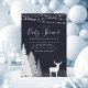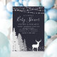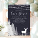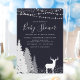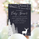 Convide convidados para comemorar um chá de fraldas de inverno com este convite temático da floresta rústica. Apresentando uma silhueta de cervo e árvores cobertas de neve sobre um fundo escuro e estrelado, esta design é perfeita para um acolhedor inspirado na natureza. Ideal para um chá de fraldas de inverno ou temática florestal.