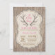 Chá de fraldas Rustic Deer Antler Pink Girl Convite. Convite para Chás de fraldas de veados. Oh Deer. Fundo Da Madeira Rústica. Campo de Vintage Retro Barn.