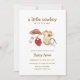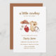 Celebre seu chá de fraldas especial com nosso bonitinho e moderado boho-aquarela pequeno cowboy está a caminho, design com roupas de cowboy, chapéu de cowboy, cachecol de cowboy, garrafa de chá de fraldas, chicote de cowboy. este único design perfeito para chá de fraldas de menino. você pode personalizar seu próprio texto através de "personalizar este modelo".