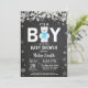 Chá de fraldas Rustic Polar Bear Winter Boy Convite. Floco de neve branco. O bebê está frio fora do Chá de fraldas convite. Convite para Chás de fraldas. Chá de fraldas De Feriado De Inverno Convide. Fundo do quadro.Preto & Branco.