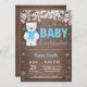 Chá de fraldas Rustic Polar Bear Winter Boy Convite. Floco de neve branco. O bebê está frio fora do Chá de fraldas convite.Convite para Chás de fraldas. Chá de fraldas De Feriado De Inverno Convide. Fundo Da Madeira Rústica. Campo de Vintage Retro Barn.