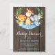 Rustic Safari Jungle Animal Boy Invitation. Fundo de Madeira Azul e Rústica. Garoto Chá de fraldas Convide. Flor Floral de Aquarela e Sair. Para mais personalização, clique no botão "Personalizar" e use nossa ferramenta de design para modificar este modelo.