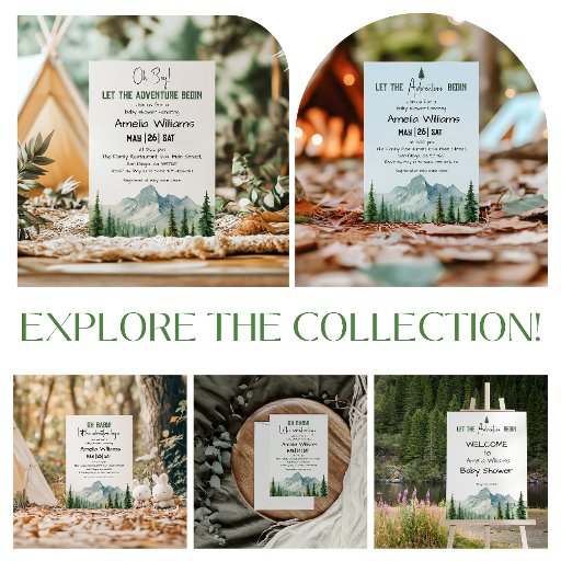 Prepare-se para a maior aventura — paternidade! 🌲 ✨ Este chá de fraldas apressado apresenta uma charmosa montanha de aquarela e cena florestal com pássaros em ascensão, definindo o tom perfeito de inspiração ao ar livre. Ideal para os pais que amam a natureza, que sonham com vibrações da floresta, ar fresco e memórias inesquecíveis!