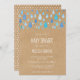 As gotas de chuva azul de bebê chic boho caem em direção aos seus detalhes personalizados sobre um fundo kraft rústico neste chá de fraldas giro, borrifo ou chá de casais. O reverso apresenta um chá adicional de gotas de chuva, adicionando um toque extra ao seu evento especial. Projetado por Thisnotme©