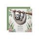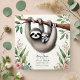 Celebrar uma nova chegada com este convite de chá de fraldas temático da preguiça. Apresentando uma ilustração encantadora de uma preguiça-mãe e bebê pendurada em um galho de árvore, cercada de verde e sotaques florais suaves em um fundo natural em forma de kraft, esse design expele calor e charme. Perfeito para uma floresta ou chá de fraldas inspirado na natureza, o layout personalizável permite personalizar todos os detalhes do evento para um convite único e memorável.