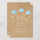 Perfeito para convidar amigos e família para um chá de fraldas especial. Com nuvens azuis bonitinhas e estrelas ouros em cordas, num fundo kraft rústico, este convite para chás de fraldas é perfeito para todos os meninos que estão a caminho. Adicione seus detalhes de celebração em branco para criar o convite perfeito. Projetado por Thisnotme©