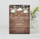 O convite para chás de fraldas de estrelas brilhando com pequenas estrelas, com luzes de cordas e nuvens verdes de menta fofinhas e estrelas ouros em cordas, em um fundo de madeira rústica, este convite para o bebê neutro em relação ao gênero é perfeito para todos os pequenos que estão a caminho. Adicione seus detalhes especiais de celebração para criar o convite perfeito. Projetado por Thisnotme©