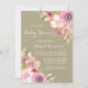 Convites personalizados para bebês com padrão de burlap country rústico e flores bonito cor-de-água rosa. Perfeito para primavera ou chá de fraldas de verão.