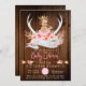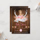 Meninas convidadas para chá de fraldas rústico de madeira de galho com rosca rústica e galhadas florais de ouro e faixa com uma adorável menina de cabelos brunette vestindo uma bonito coroa de ouro e tutu cor-de-rosa em um fundo de madeira rústica. Você pode personalizar facilmente este belo convite de chá de fraldas de madeira rústica para o seu evento simplesmente adicionando seus detalhes. Este é um design impresso sem brilho real, etc.