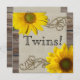 modelo fácil para um chá de fraldas duplo. Este convite para chás de fraldas apresenta imagens de fundo de madeira de linho velha e dois girassóis — semelhantes, mas não idênticas.