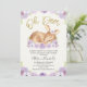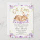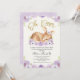 O convite de chá de fraldas para veados, doce e neutro em termos de gênero. Este design apresenta um adorável cervo, vários arranjos florais em lilás e em branco e uma rubrica de caligrafia em folha de ouro.