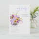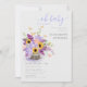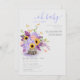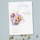 Um buquê rico feito de flores exuberantes, girassóis, lavandas, trigo, hálito de bebê, mariposa e ranúnculo faz uma bela ilustração, pintada à mão em aquarela digital, que decora este belo e elegante convite ao chá de fraldas. Romântico e encantador, é uma escolha encantadora para qualquer cenário rústico.