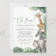 Convide amigos e família para comemorar um pouco no caminho com este convite de chá de fraldas temático safari.