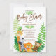 Chá de fraldas da Selva Única Safari, com uma girafa, zebra, leão e macaco enquadrados com folhas da selva colocadas sobre um fundo branco, com um fundo marrom coordenador e um tipo de letra alfanumérico à mão. Perfeito para um chá de fraldas de meninas, chá de fraldas de meninos ou um chá de fraldas neutro em gênero.