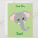 O lugar número um para novos convites personalizados para o chá de bebê é Miss Rhoadie1981. Traga alegria para o seu chá de fraldas hoje com estes bonitos e bonitos convites para o duche de elefantes de corações verdes. Este convite mostra corações bonitos num pano de fundo verde e uma ilustração elefante adorável na frente. O verso exibe uma imagem maior com o elefante e "veja você logo" escrito sobre ele. Compre o seu hoje! Trabalho de arte criado por: AMBilustrações http://www.etsy.com/shop/AMBillustrations/