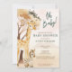 Um belo convite de chá de fraldas de "bebê" com animais safari, incluindo uma girafa, zebra e macaco.