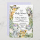 Bebê safari de menina convida com adoráveis filhinhas com flores roxas em um lindo verde e roxo. Estes convites para bebês safari são facilmente personalizados para o seu evento simplesmente adicionando os seus detalhes. Você também pode mudar a cor de fundo neste adorável convite de chá de fraldas safari.