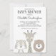 Convite para Chás de fraldas moderno com ilustração escandinava de leão, tigre e girafa - perfeita para um chá de fraldas temático entre matas e safari neutro