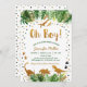 Convites Chá de fraldas Safari Verde e Dourado do Dinossaur