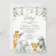 Chá de fraldas Safari Verde Moderno Convite para Safari Cute neutra do gênero Safari temático convite de chá de fraldas com algumas folhagem de eucalipto, quatro animais safari fofos e uma fonte moderna de caligrafia. Excelente de animais da selva temidos por chá de fraldas neutro em termos de gênero.
