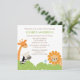 Esses convites adoráveis podem ser usados como convites para bebês, anúncios personalizados de nascimento ou adoção de bebês, festas de aniversários de criança, etc. e apresentam uma ilustração caprichosa de um leão, um elefante, uma girafa, uma zebra e um pássaro na selva. Perfeito para rapazes, raparigas ou chás de fraldas neutros. Estúdio de cacau