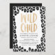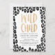 Convite moderno para chás de fraldas com uma borda de impressão negra e leopardo com "Criança Selvagem", exibido em letras falsas de ouro. Personalize o convite para chás de fraldas selvagens com o nome da futura mãe e os detalhes do chá.