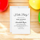 Este elegante convite de Chá de fraldas preto e branco é perfeito para um Chá de fraldas moderno. o simples design apresenta uma elegante caligrafia preta sobre um fundo branco.