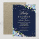 Convites Chá de fraldas Sparkle Floral Blue Dourado Boy